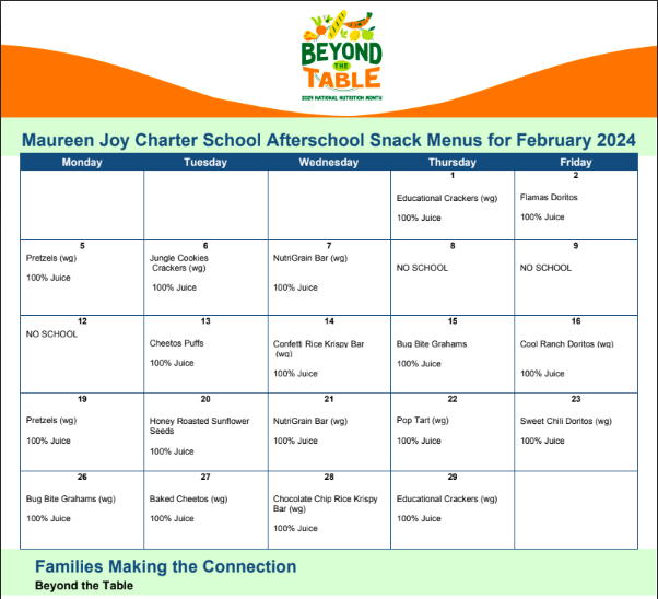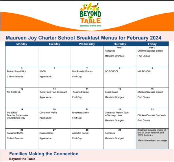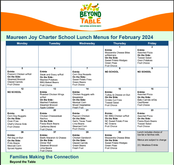 At Maureen Joy Charter School, we believe that nourishment is key to effective learning. That's why we are pleased to offer free breakfast and lunch to all of our students, ensuring they have the energy and focus they need to succeed in the classroom.